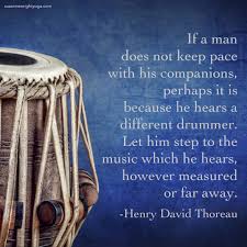 If a man does not keep pace with his companions. Let him step to the music which he. If a man does not keep pace with his companions perhaps it is because he hears a different drummer. If a man does not keep pace with his companions perhaps it is because he hears a different drummer.