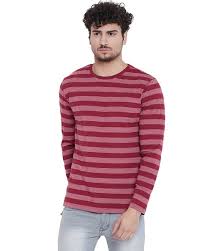 Maroon striped t shirt. This product is TWILL TAPEs original garment. Team a printed maroon T-shirt with a gorgeous short flared skirt and sexy peep-toes and you will be showered with compliments. Maintaining AQL 25 On Finished Garments and Production with German Machines Product Softness.